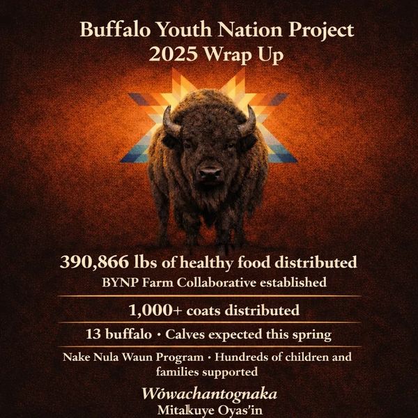 Wokini, in our Lakota Language, means new beginnings. Our Pte Oyate are more than animals, they are relatives, teachers, and healers. Our Wokini herd is the foundation of restoring food sovereignty and security for our after school food program and re-establishing cultural food systems. Each calf born is a promise-a living act of restoration for the generations to come.